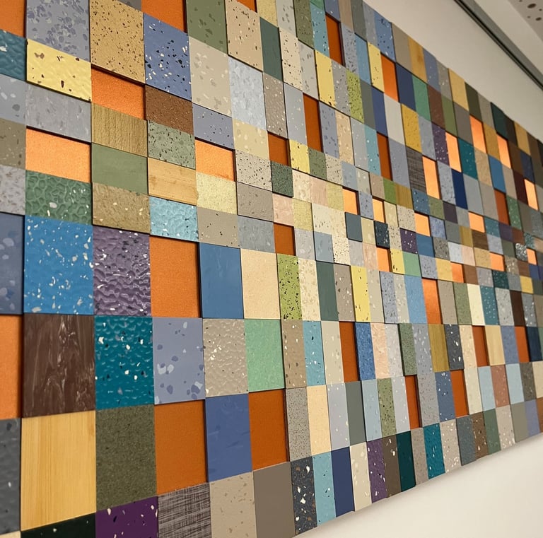 Transforming discarded materials into vibrant, sustainable geometric artworks.
